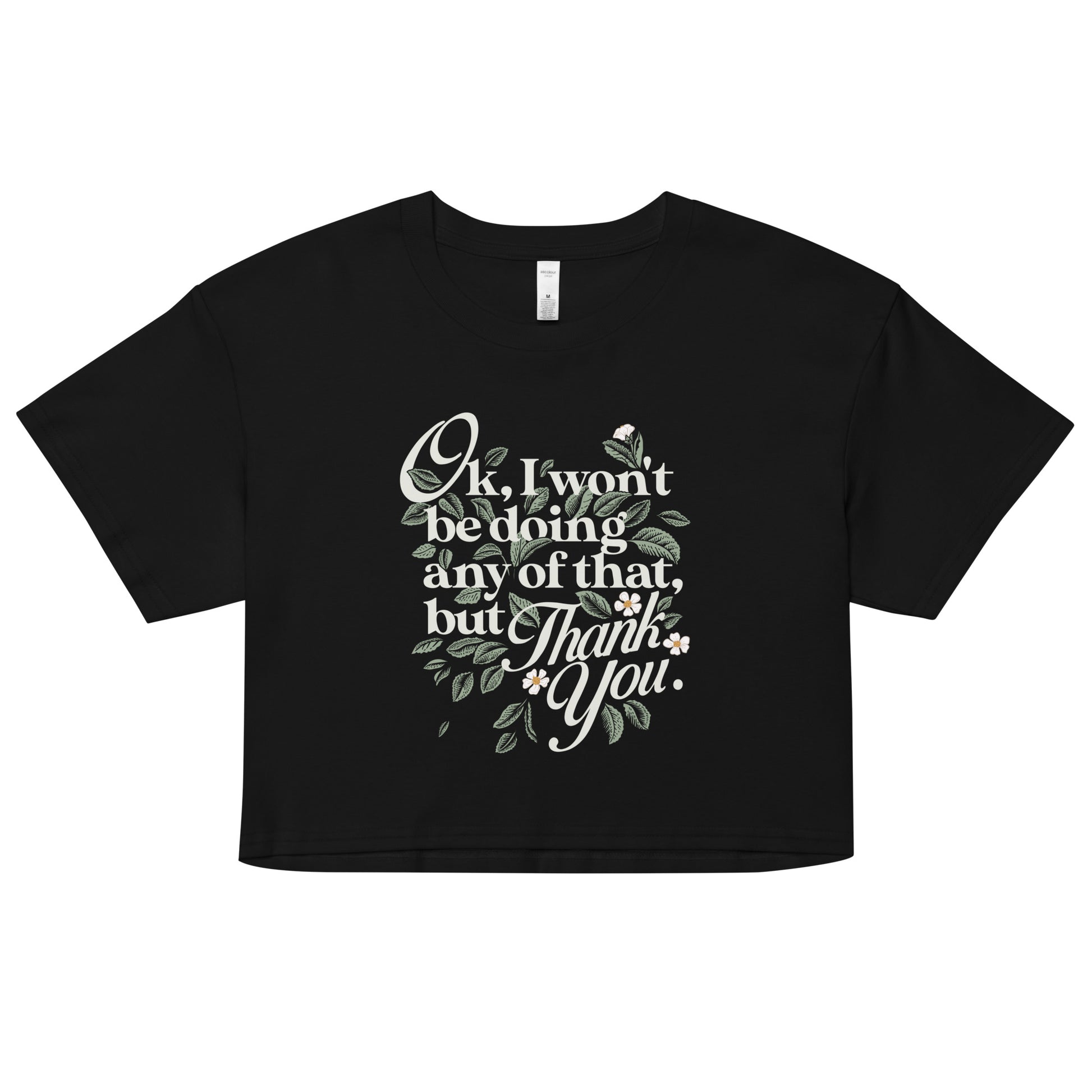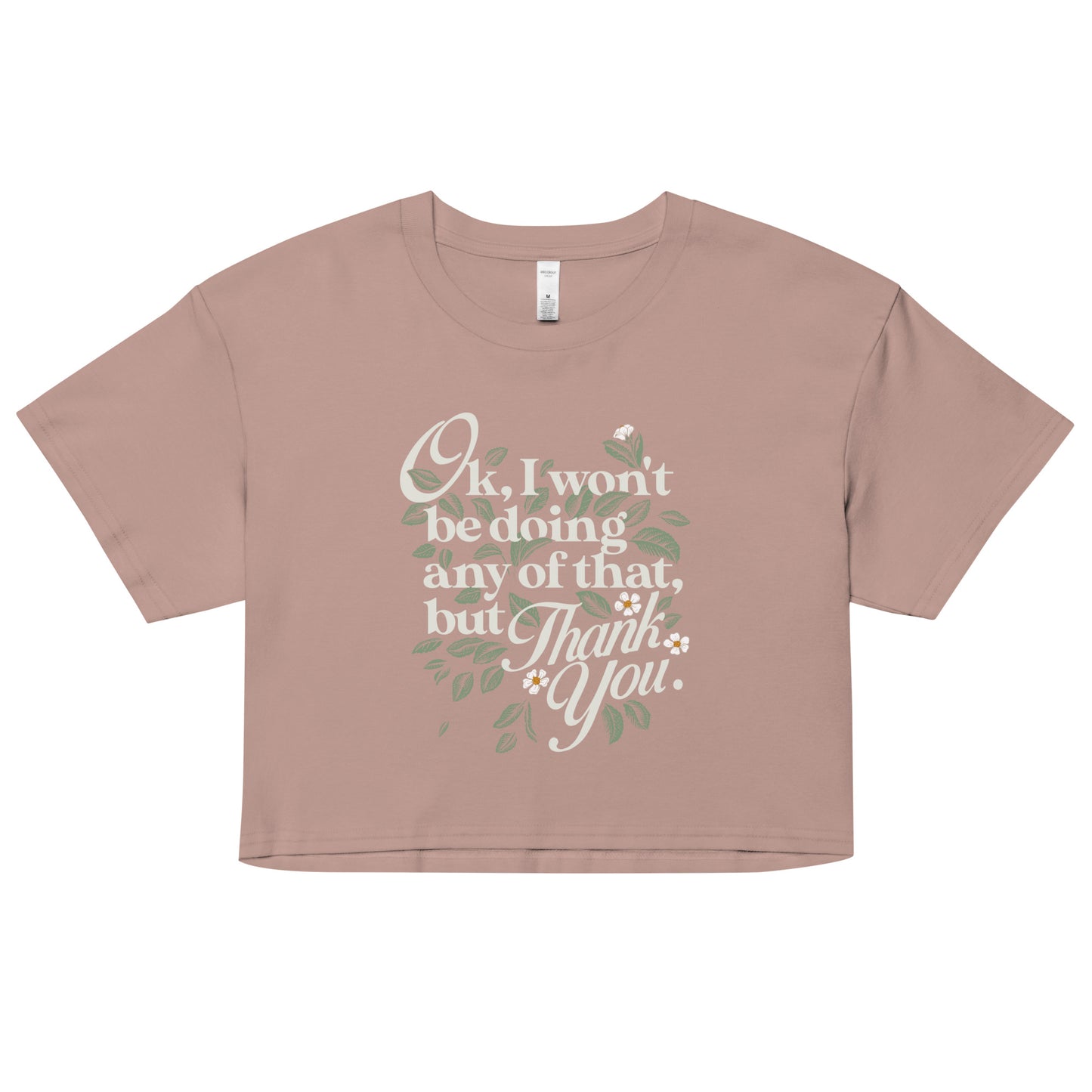 This premium crop tee is super comfy and wears like a dream. Expect super soft 100% combed cotton fabric that is preshrunk. (Heather colors contain 15% viscose).