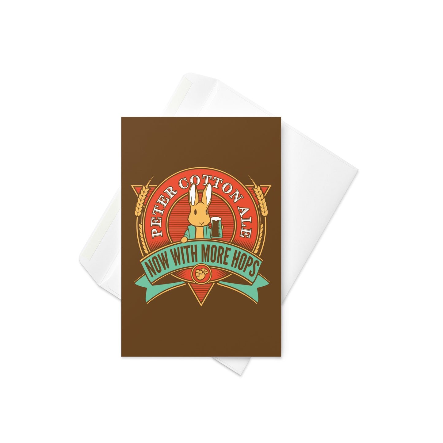This 4" by 6" greeting card has the design printed on the front while the inside is left blank for a personalized message.