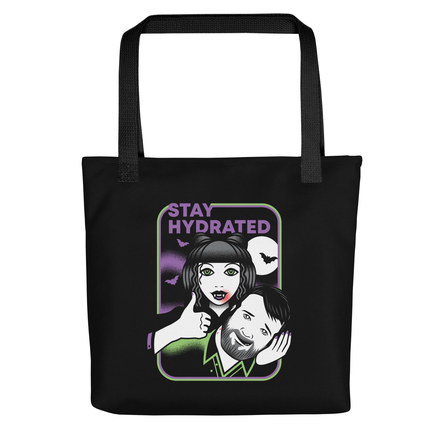 With the design on both sides, this 15" x 15" tote bag is made of spun polyester with 100% cotton handles for optimal ease and comfort. Great for groceries, t-shirts, books, and more!
