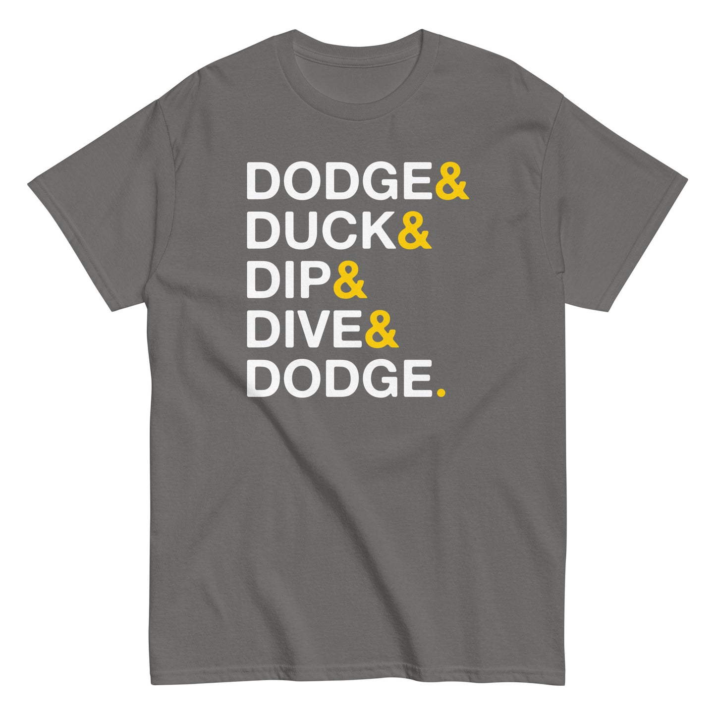 Not too fitted. Not too loose. This 100% cotton (heather colors contain polyester) classic tee looks great and gets the job done every time.